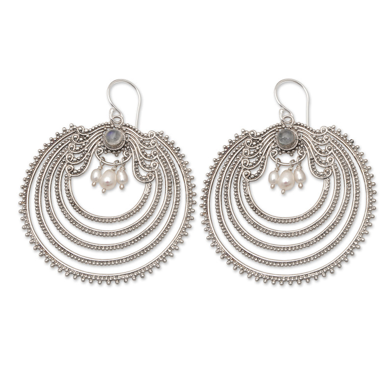 You can find our cultured pearl and rainbow moonstone dangle earrings 'Fancy Harmony' by Ketut Sulastri in jewelry categories such as Traditional Earrings, Gemstone Earrings, Balinese Traditional Silver Earrings, Birthstone Earrings and Pearl Earrings. Enjoy exploring these sections for other Novica treasures.