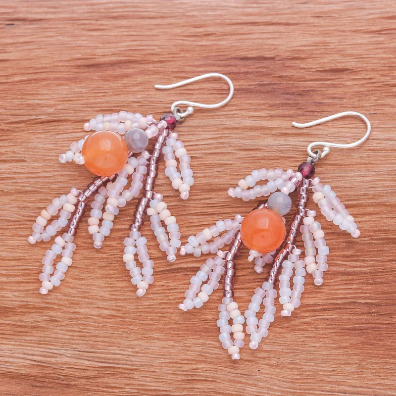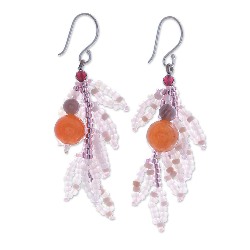 Weaving their spellbinding charm into every ensemble, these vibrant dangle earrings are exquisitely handcrafted from a fusion of quartz, agate, garnet and glass beads. This remarkable design by Thai artisan Siriporn comes with sterling silver hooks and is sure to make a fashion statement.