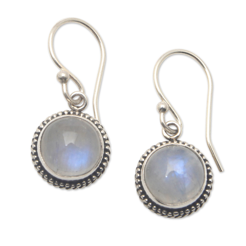 Balinese artisan Made Sudiari puts rainbow moonstones in the spotlight with a stunning creation crafted using advanced techniques. Working with sterling silver, the artisan creates braided structures in a polished finish, adding the gems in a bezel setting for extra elegance. On top of that, these dangle earrings symbolize harmony, making them a magical accent perfect for any occasion.