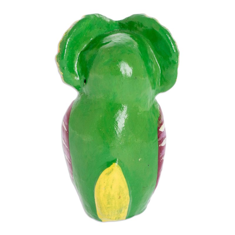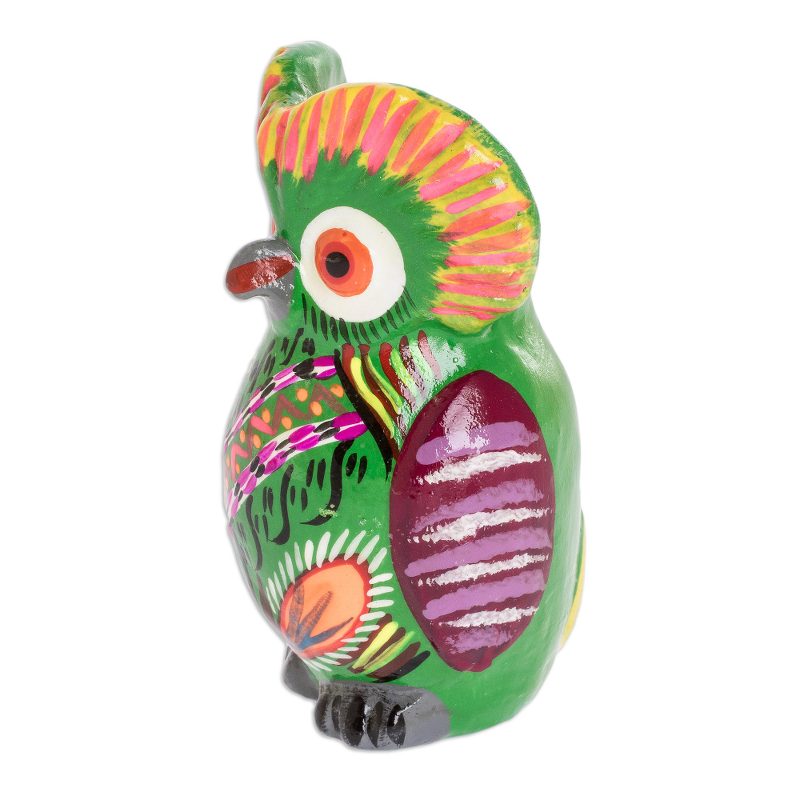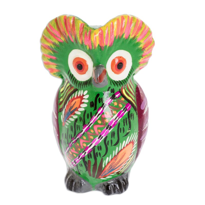 Delivery EstimateThis Guatemalan owl has decided to dress in green like his cousin the quetzal, the national bird of that country. It is hand painted by ceramicist Vitelio Orozco and decorated with leaves and geometric patterns in multiple colors.