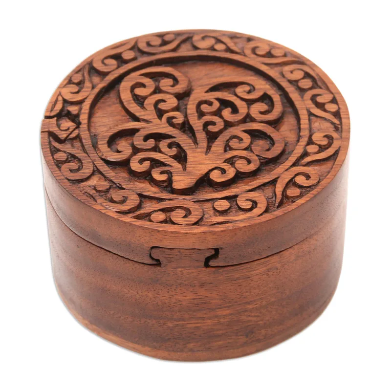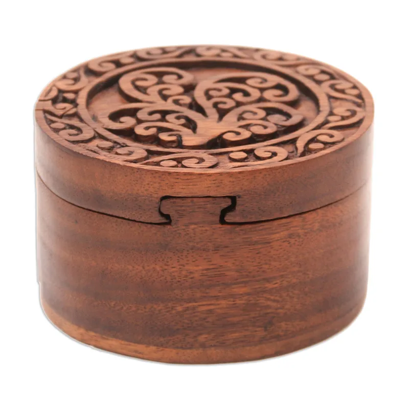 Designed to store your jewelry or other odds and ends, Eka's decorative puzzle box features traditional Balinese designs. Balinese artisans craft the box from suar wood, hand carving curling designs into the lid before polishing the surface for a beautiful luster.