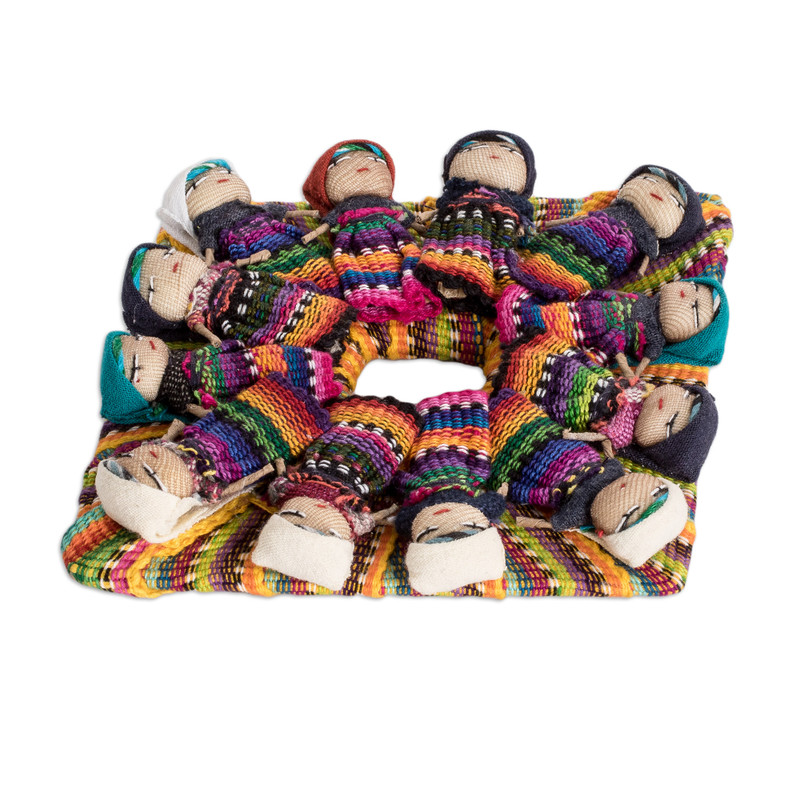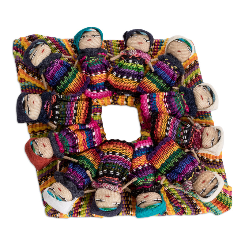 Delivery EstimateA dozen Guatemalan quitapenas or "worry dolls" embellish this lovely magnet. Elias Garcia handcrafts this diamond-shaped ornament made from handloomed multicolor cotton. The worry dolls are made by the Lopez Garcia Family artisans. The combination of these colorful pieces makes a joyful decoration that will definitely get a lot of smiles.