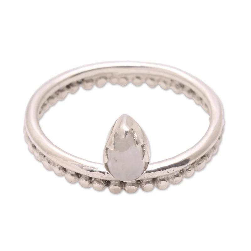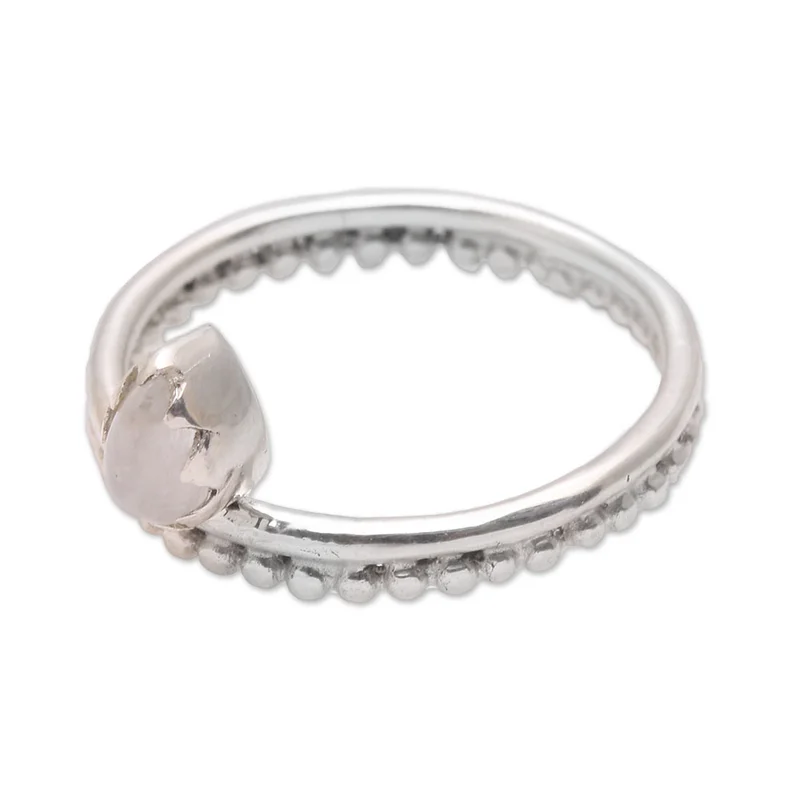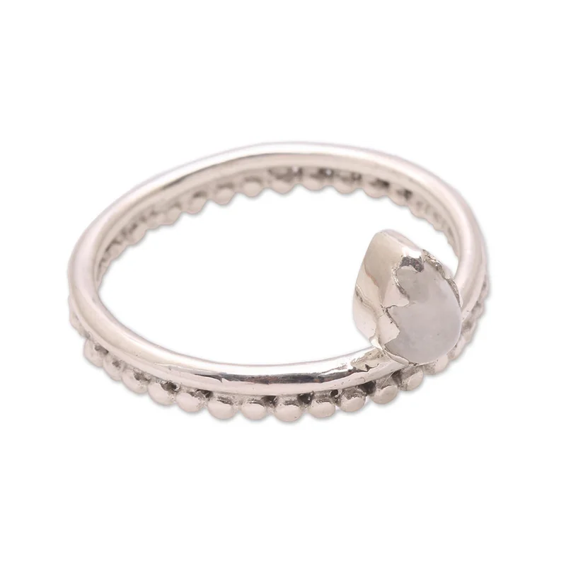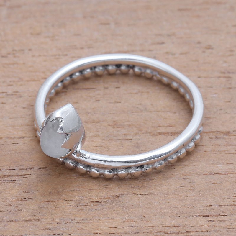 Backed by our 100% Happiness GuaranteePossessing a serene beauty, this lovely cocktail ring from Bali is designed by Ketut Sulastri. This ring circles the finger with a sterling silver band, featuring handcrafted dot motifs. A cabochon of natural moonstone is enshrined at the front.