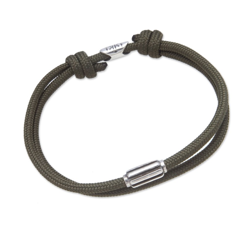 Henry Anthony Sanny transforms your style into a modern fashion statement with this chic double-strand nylon bracelet. Choosing a refined green hue as the accessory's main color, the Balinese artisan crowns it with a glowing sterling silver pendant and a comfortable sliding knot, allowing you to adjust the length to your liking.