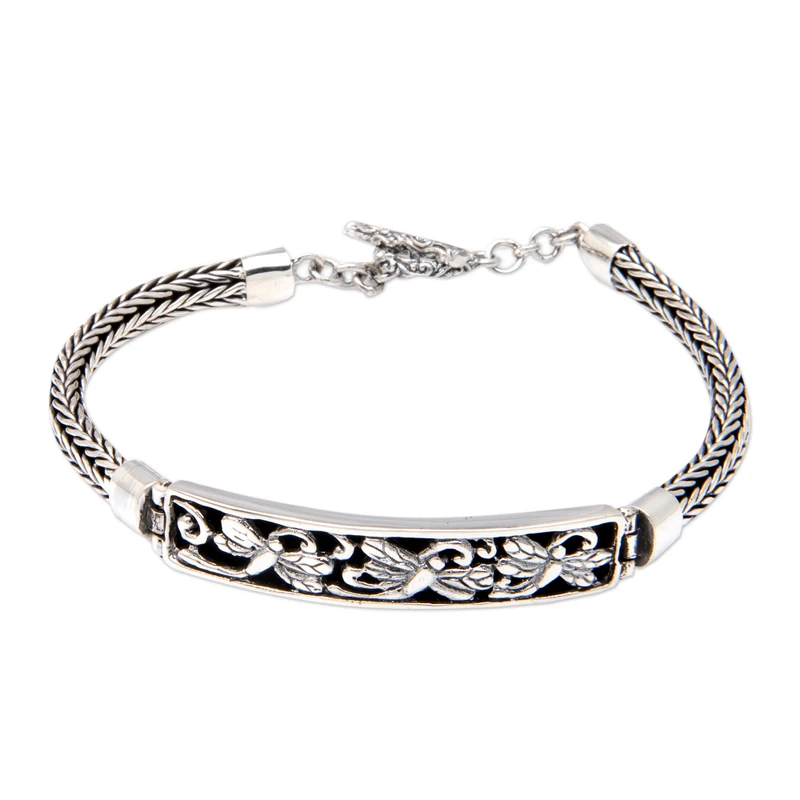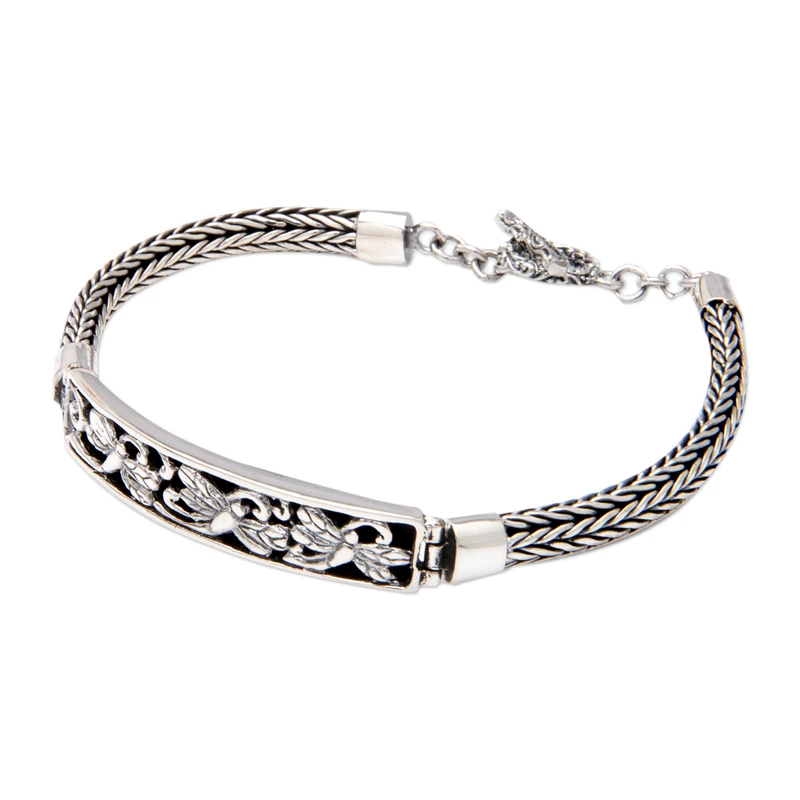 Wayan Asmana's sterling silver bracelet shows the world the glorious side of Mother Nature. Crafted from sterling silver in Bali, this accessory features a polished pendant with embossed dragonfly motifs, a traditional symbol of growth and change. On top of that, a naga chain completes the design's beauty.