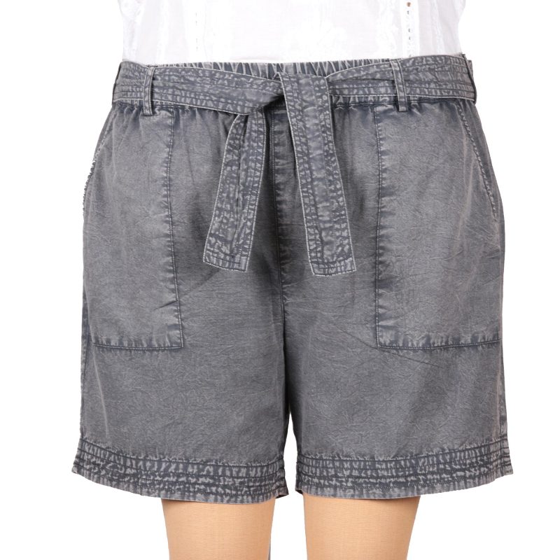 I really love these shorts in the Slate color. The stitching makes them special. I don t use the belt. I ordered up a size, thinking they might run small, but I shouldn t have. They run true to size. Don t hesitate to purchase. A real bargain!