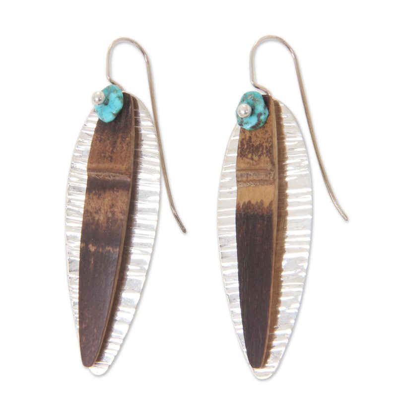 Uniquely beautiful, these drop earrings from the Pertiwi Collection are created from an intriguing mix of materials. The cool blue of natural turquoise is complemented by earthy brown bamboo and textured sterling silver. Because of the natural materials that are used, no two pairs will be alike, making each a one-of-a-kind work of jewelry art.