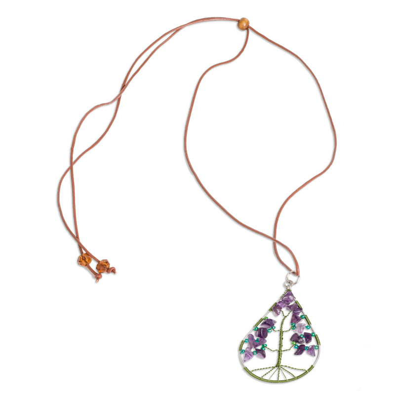 You can find our amethyst pendant necklace 'Drop of Life in Purple' by Domingo Reanda in jewelry categories such as Leaf and Tree Necklaces, Glass Bead Necklaces, Stainless Steel Necklaces and Pendant Necklaces. Enjoy exploring these sections for other Novica treasures.