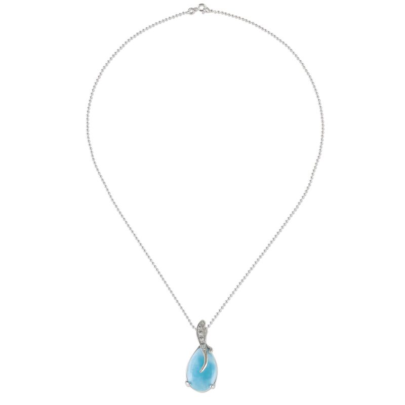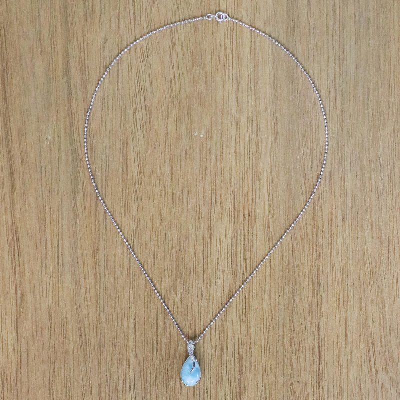 Backed by our 100% Happiness GuaranteeCradled by sterling silver, a drop of watery blue larimar is featured in the pendant of this Thai necklace. Michael Krainer designs the necklace, accentuating the blue stone with petite, sparkling cubic zirconia.