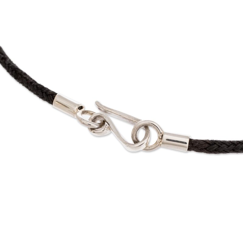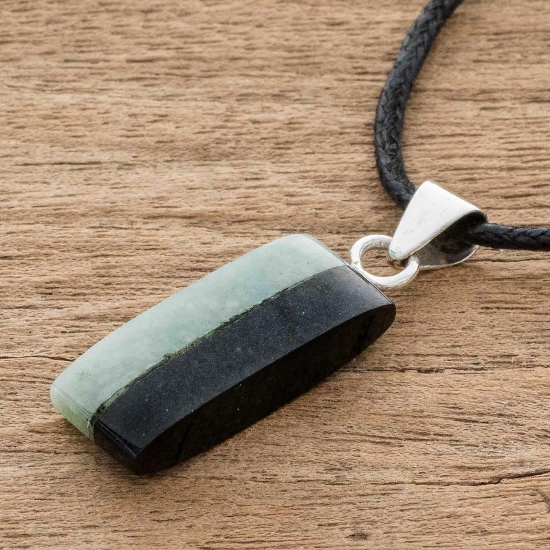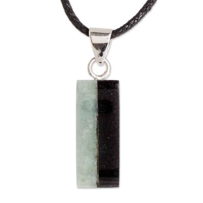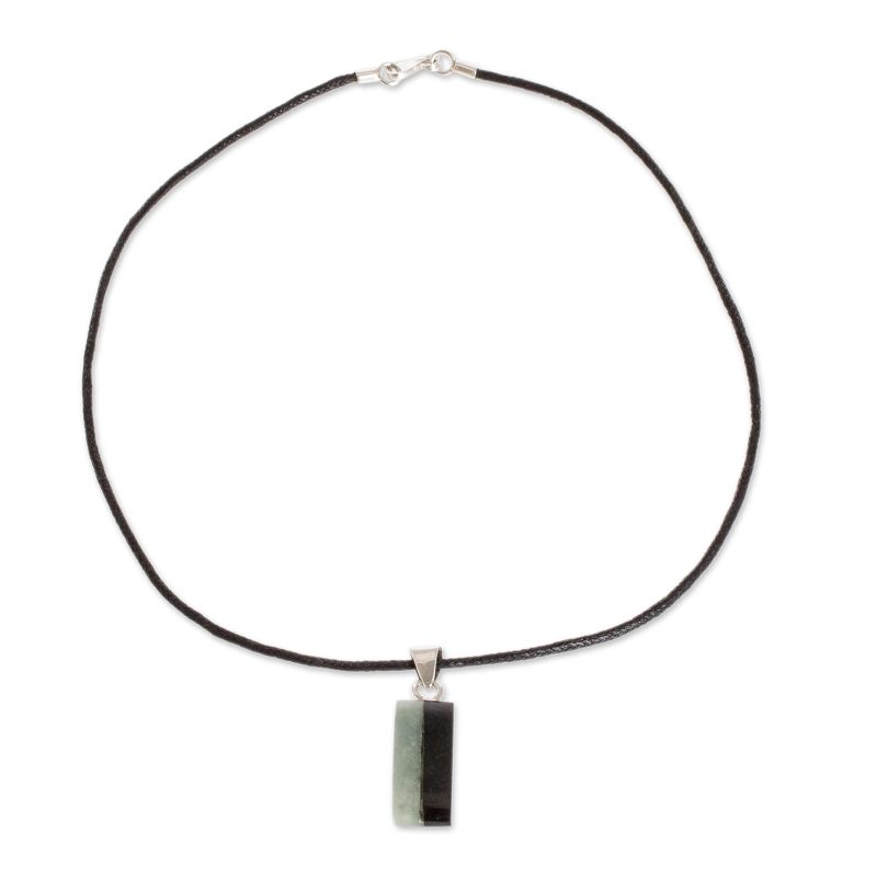Delivery EstimateRuben and Gilda Perez use Guatemalan apple green and black jade gemstones to represent the duality of night and day in this elegant pendant necklace. The pendant is suspended from a black cotton cord with sterling silver findings.