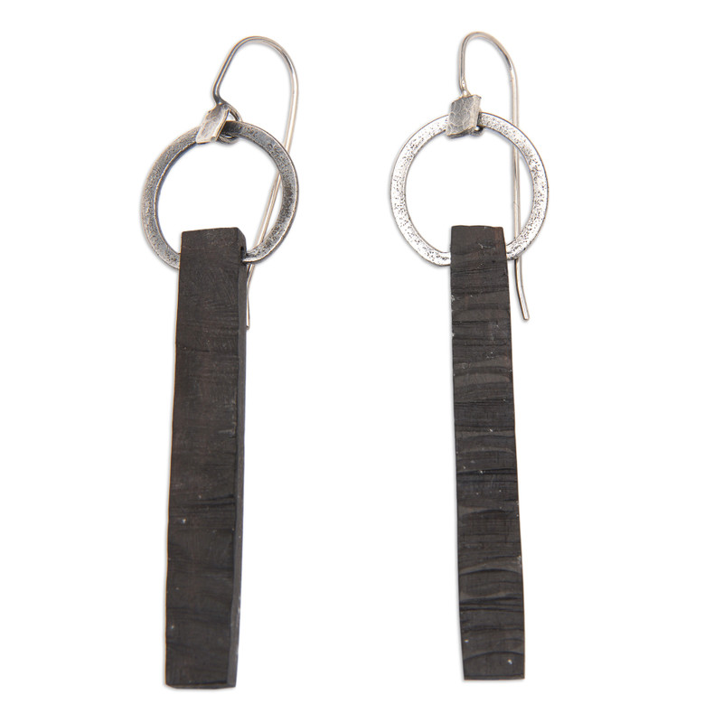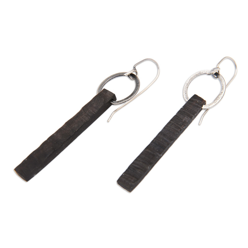 Balinese artisans treasure the rich grain of ebony in the harmonious design of these earrings from the Pertiwi Collection. The lean wood slabs are suspended from sterling hoops featuring a rustic finish.