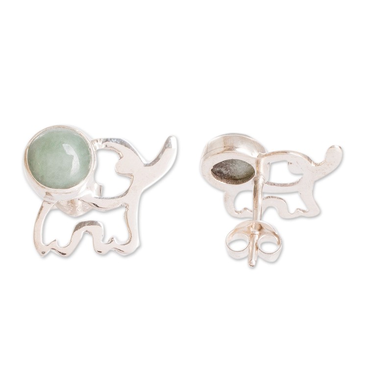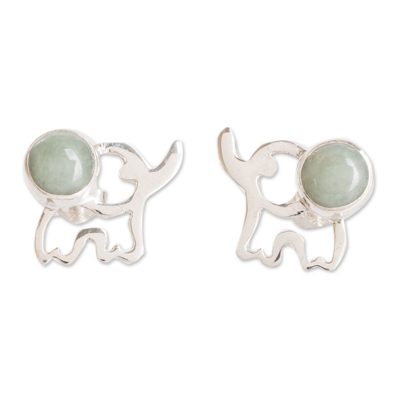 Backed by our 100% Happiness GuaranteeLittle shining elephants use their adorable aura to enhance the beauty of the dark green jade stones that crown Estuardo Jimenez's newest creation. Working with advanced techniques, the Guatemalan artisan crafts the elephant-themed structure of these button earrings, adding a high-polish finish for a radiant look. The natural jade jewels that embellish the earrings are strongly associated with nature and are believed to help people find balance.