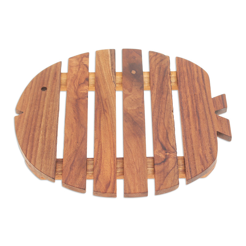 Delivery EstimateLooking for a way to subtly protect your surfaces while displaying your meals in all their delicious glory? Sanai Keawchaisa understands the challenge well and handcrafts this adorable fish-themed pot stand made from teak wood. The Thai artisan draws inspiration from natural elements to create this marine kitchen accessory, whose polished finish profits to the maximum from the natural wood hue and grain pattern, making it perfect for your table decor.