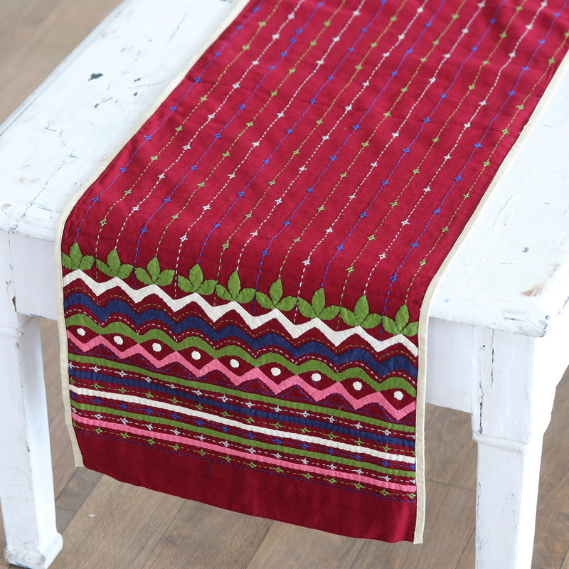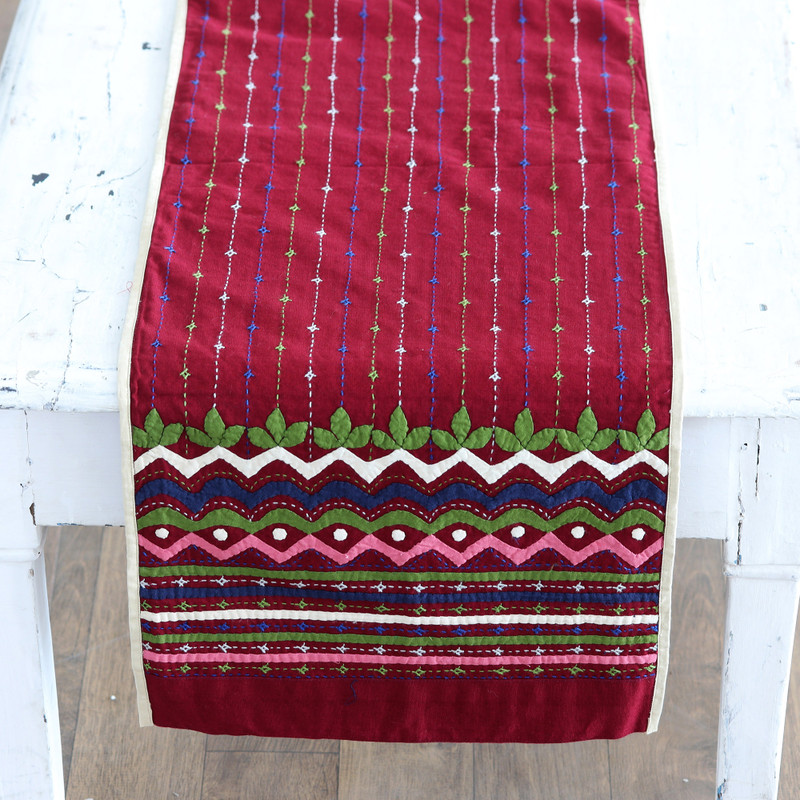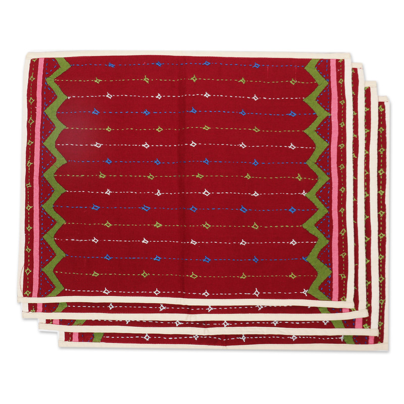Backed by our 100% Happiness GuaranteeIndian artisans of the Self-Employed Women's Association show their expertise and creativity with a charming five-piece set featuring an intricate patchwork design. Drawing inspiration from natural themes, the team adds leafy and geometric details to the set's table runner and four placemats, creating a sweet aura around the accessories.