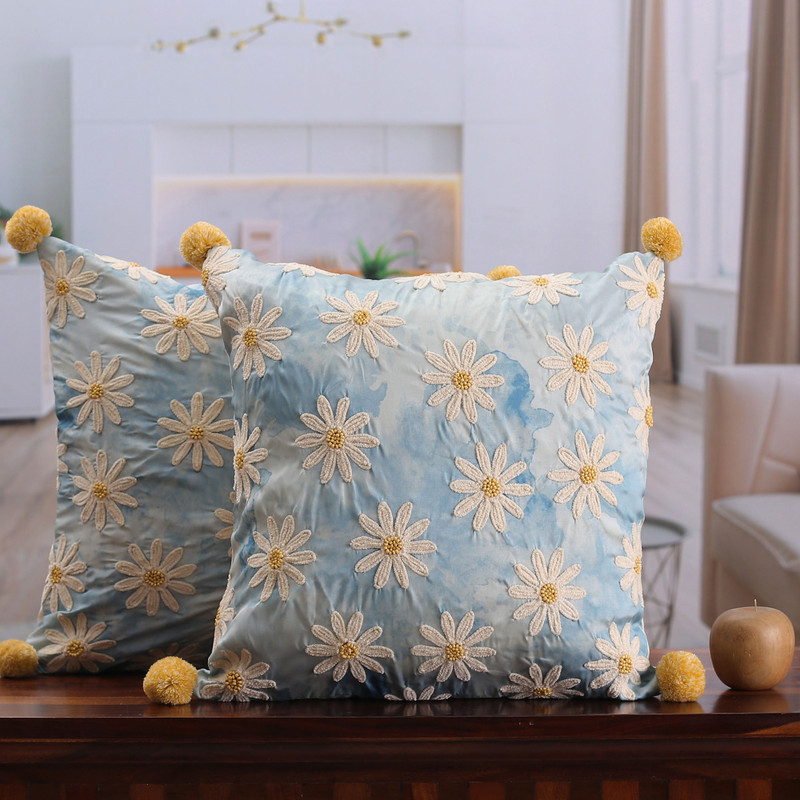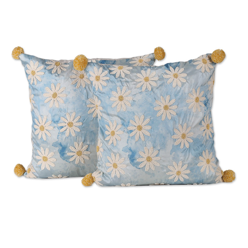 You can find our embroidered cushion covers 'Sky Daisies' (pair) by Seema in pillows & throws categories such as Floral Cushion Covers and Polyester Cushion Covers. Enjoy exploring these sections for other Novica treasures.