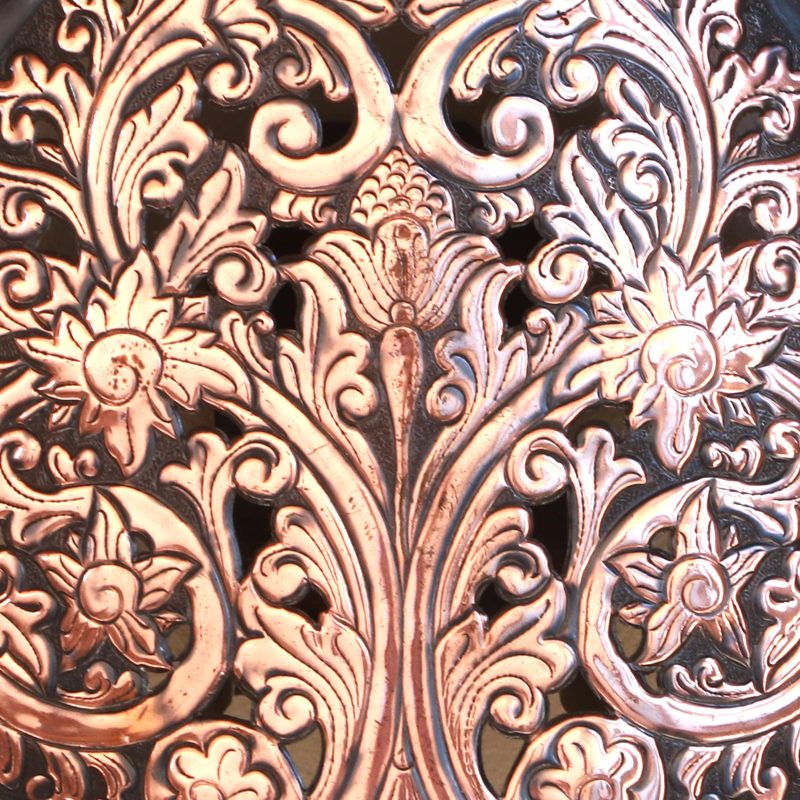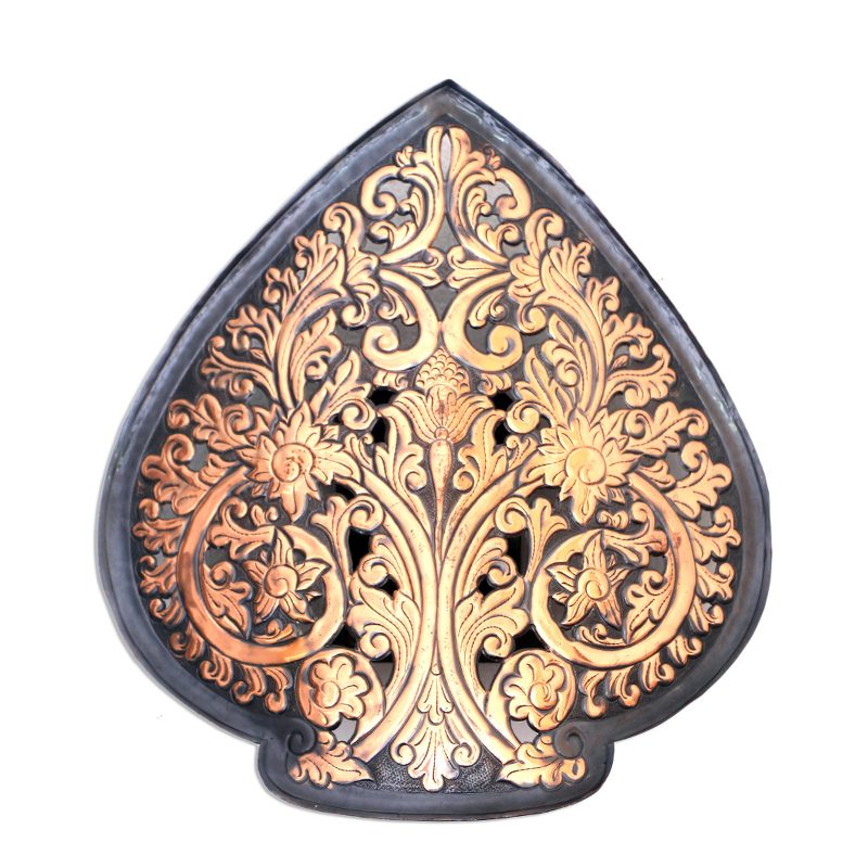 Backed by our 100% Happiness GuaranteeShaped like a spade from a deck of cards, this wall sconce is created by Mimik Sriningsih in Java. She crafts the sconce from copper with an antiqued finish. Shining floral patterns are realized in elegant openwork. Inside, this sconce features space for inserting a bulb.