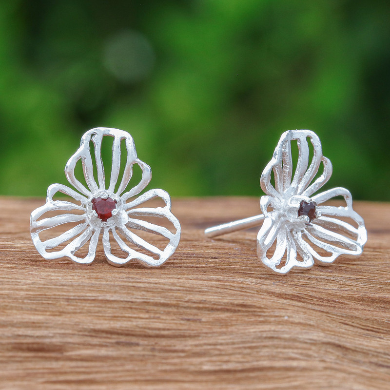 You can find our garnet button earrings 'Adoration Bloom' by Sarote Lochotinunt in jewelry categories such as Floral Earrings, Gemstone Earrings, Birthstone Earrings, Garnet Earrings and Silver Earrings. Enjoy exploring these sections for other Novica treasures.