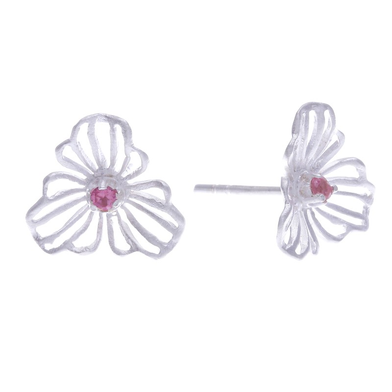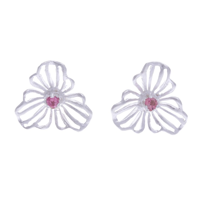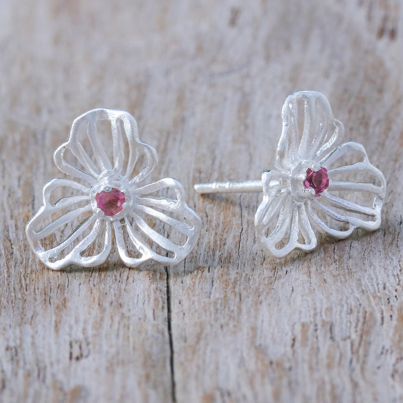 Abstract petals surround one of the most precious jewels on Earth. Thai artisan Sarote Lochotinunt chooses sterling silver to create these floral button earrings embellished with natural tourmaline jewels in a prong setting, whose dazzling beauty is as stunning as the message they carry: reconciliation, compassion and friendship.