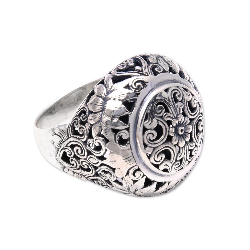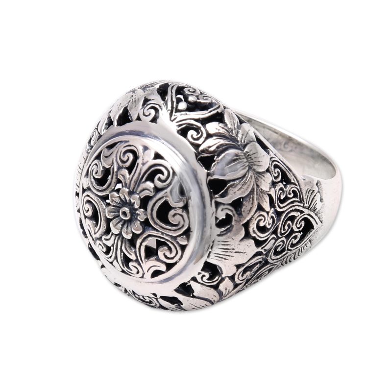 You can find our sterling silver domed ring 'Garden Dome' by Ni Wayan Astiti in jewelry categories such as Floral Rings, No Stone Rings, Silver Rings, Sterling Silver Rings and Cocktail Rings. Enjoy exploring these sections for other Novica treasures.