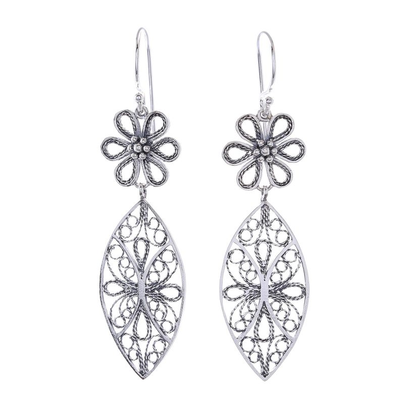 Backed by our 100% Happiness GuaranteeThai artisan Lalana exalts the beauty of fine filigree work. Handcrafted rope patterns in sterling silver fill two eye-shaped segments that dangle below elegant daisies.