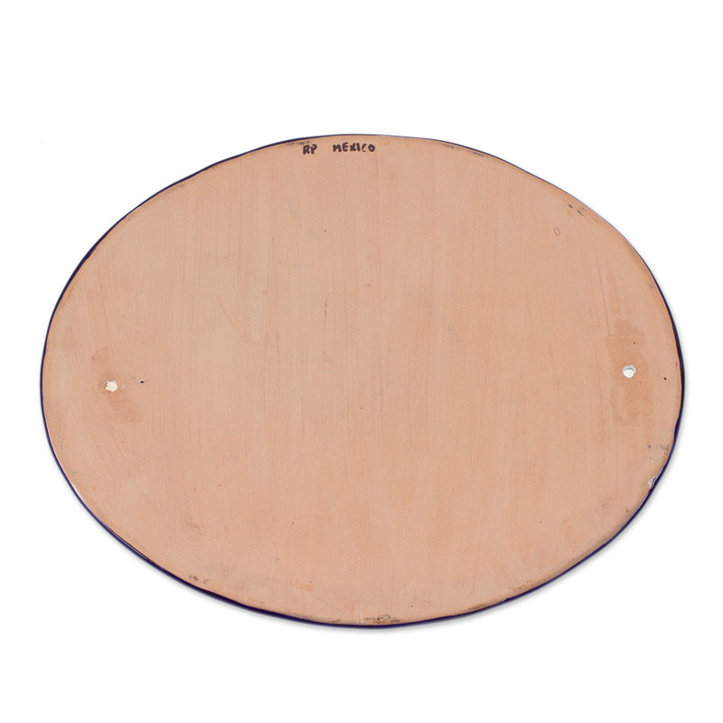 Designed by Mexican artisan Juana Ponce, this wall sign will add the beauty of Talavera handicrafts to your home. The oval sign is crafted from ceramic, featuring hand-painted floral motifs that wreathe its central message of welcome. The sign features two holes for screws or to add a cord to hang. Each piece bears the signature of the family run studio on the back.