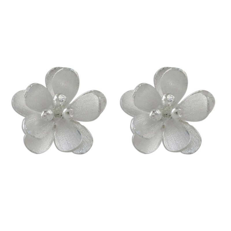 Backed by our 100% Happiness GuaranteeTwo fantastic blossoms are handcrafted of sterling silver, featured in this glistening pair of button earrings from Thailand. Lalana designs the earrings, elaborated with a fascinating combination of finishes.