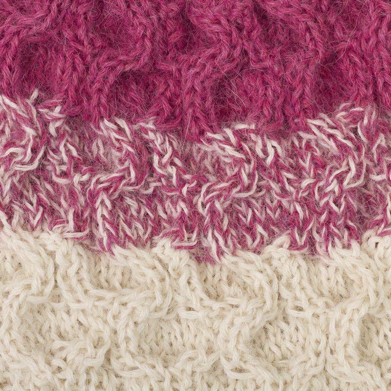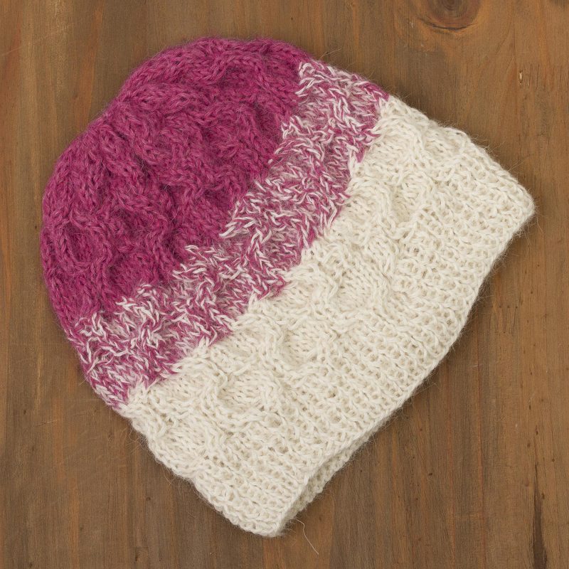 Backed by our 100% Happiness GuaranteeBright blocks of color in this hand crocheted hat, from fuchsia to eggshell white, bring a bright pop of color to your cold weather wardrobe. Designed by Elvia Melendez of Peru, the hat is made of sumptuously soft, light and warm alpaca and is worked in a lovely cable pattern.