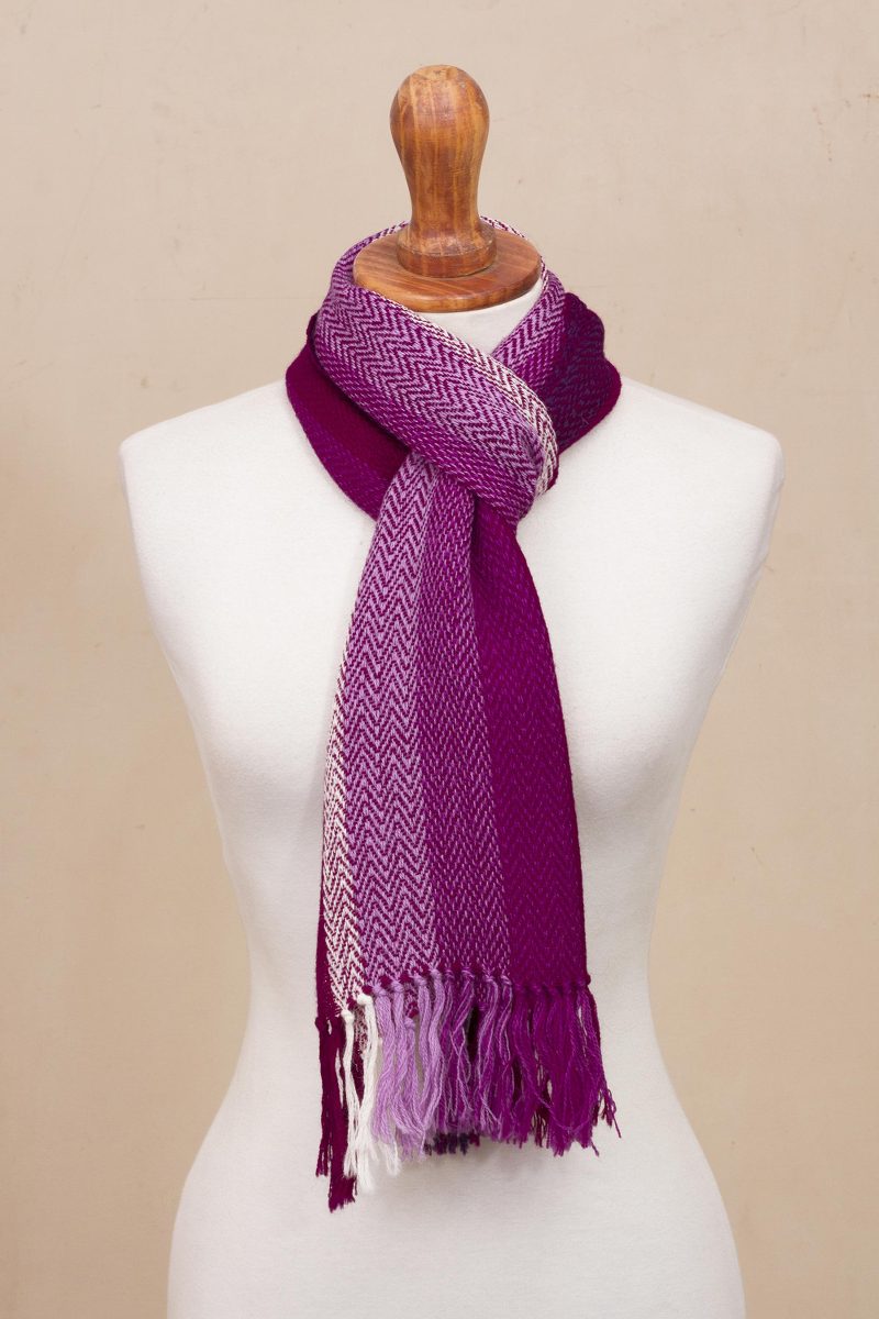 Backed by our 100% Happiness GuaranteeVertical stripes in gradient shades of fuchsia are eye-catching in this sumptuously soft 100% alpaca scarf. A chevron weave pattern adds to the visual interest of the scarf. Members of the Ulloa Family of Peru hand weave the scarf on a traditional backstrap loom using time-honored techniques. The scarf is finished with fringe.