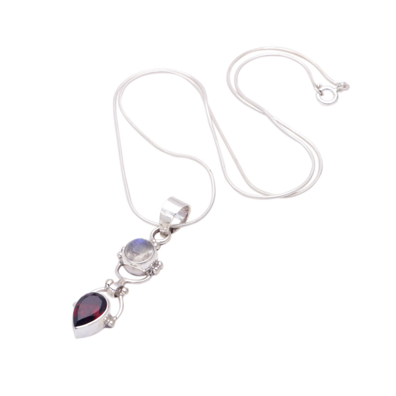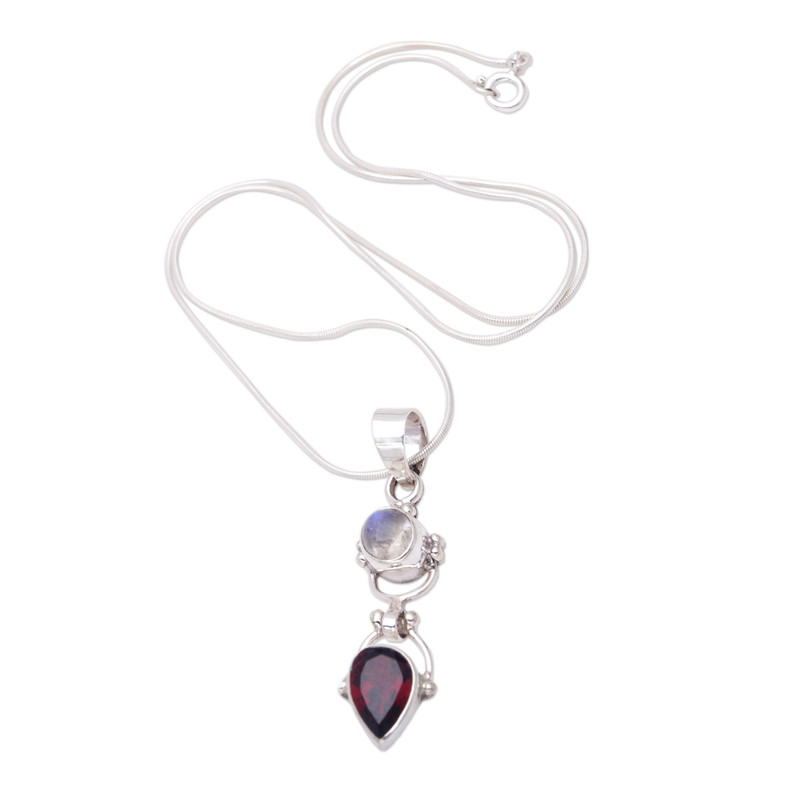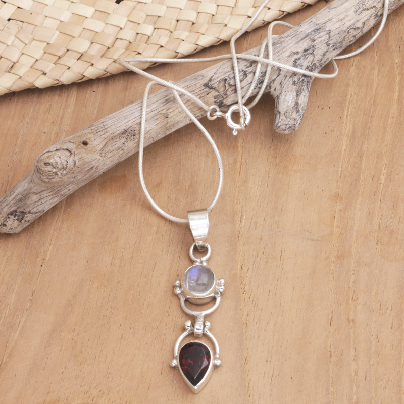You can always count on natural stones to make you stand out, especially if they are complemented by lustrous sterling silver like this breathtaking pendant necklace. Indonesian artisan Komang Suastra selects magnificent garnet and rainbow moonstone gemstones for a piece of jewelry that will make a statement.