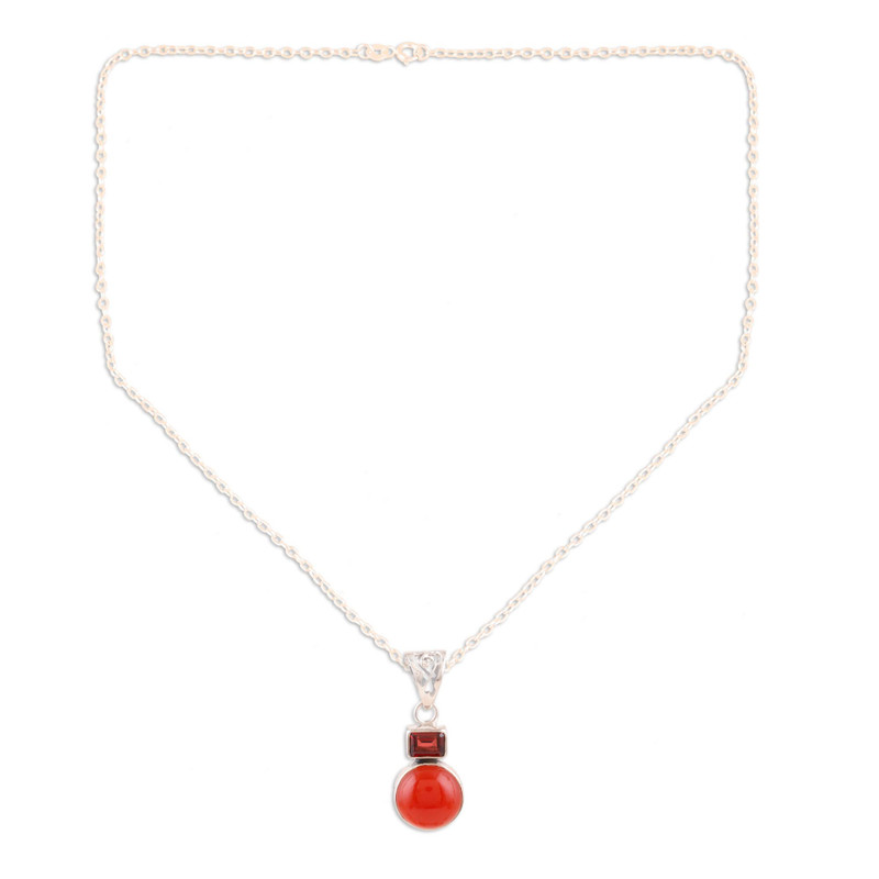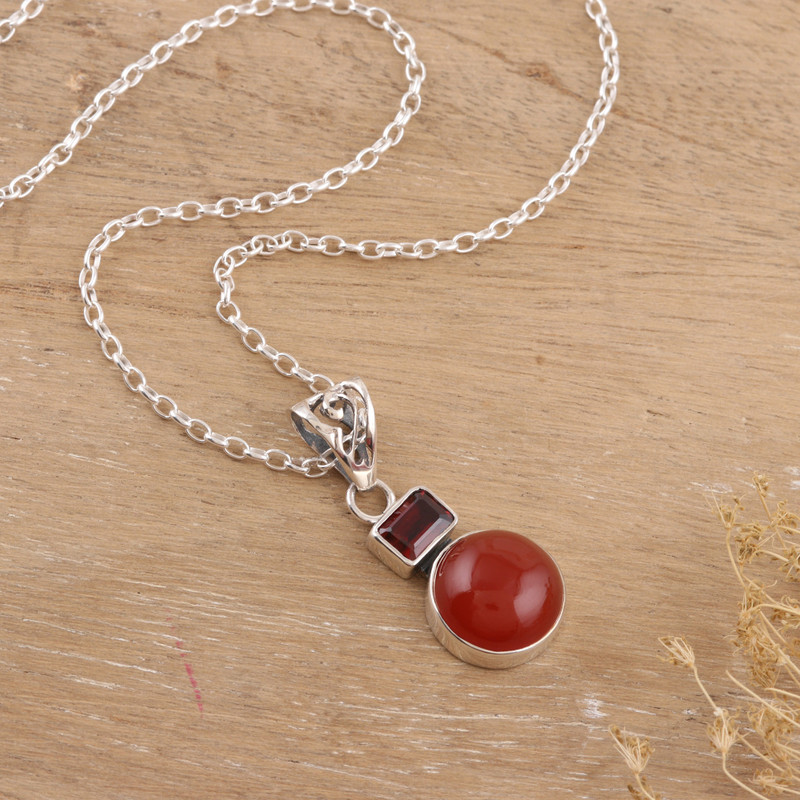 Presented by Shanker, this sterling silver pendant necklace makes a stylish accessory you can wear anywhere. Indian artisans add a faceted one-carat garnet stone and a natural carnelian to craft a design full of uniqueness. The warm colors allow this creation to complement any outfit.