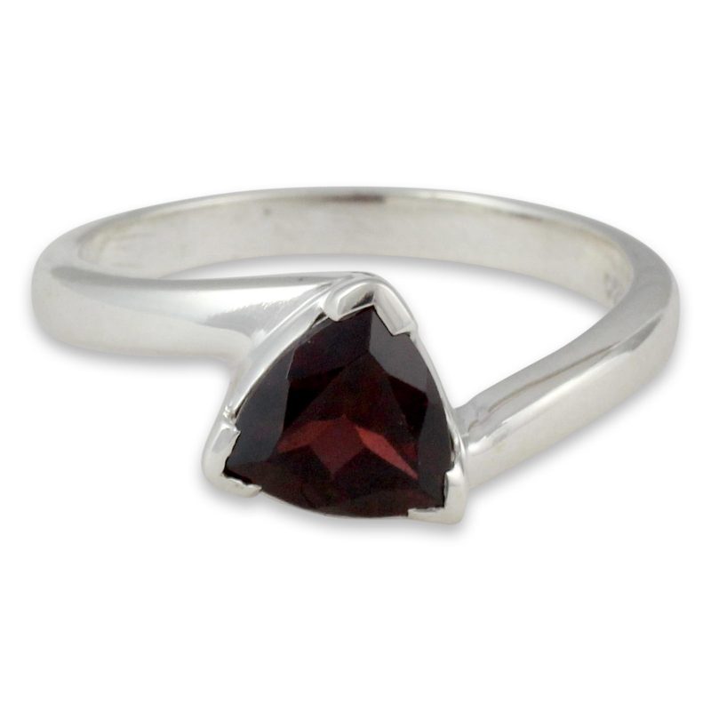 Sparkling garnet crowns this solitaire ring from India's Alok Jain. The faceted 1.5 carat gem is regarded as the stone of love. The ring is crafted of sterling silver featuring a smooth and polished finish.
