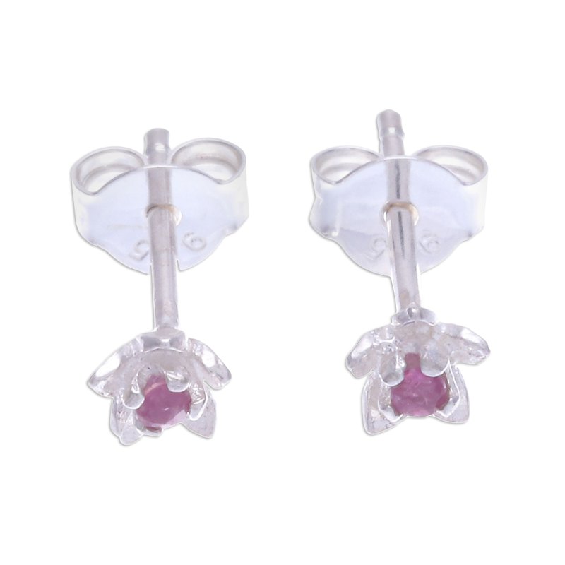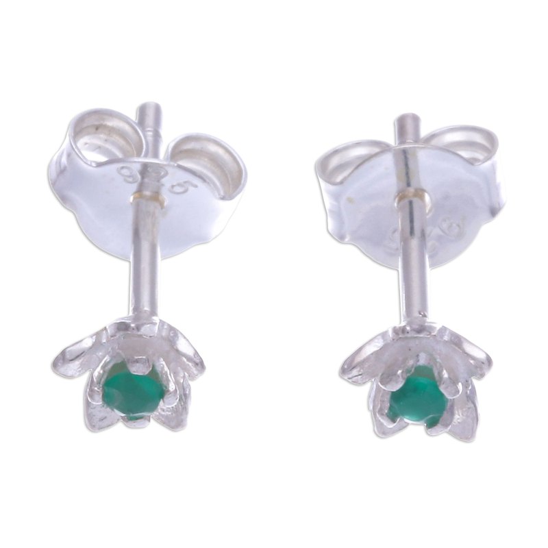 Mix things up during the workweek with Wadarat Supasirisuk's set of floral stud earrings, each featuring a different gemstone to suit your mood. Thai artisans use sterling silver to handcraft the earrings, centering each pair with colorful gemstones: choose between sparkling blue or pink sapphires or green chalcedony.