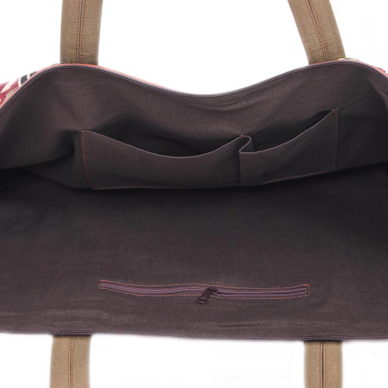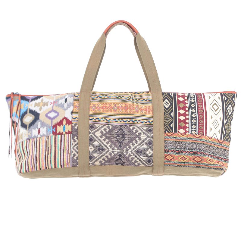 Backed by our 100% Happiness GuaranteeChirada's yoga mat bag will have you feeling prepared and ready to go for your next class. Crafted from a blend of cotton and nylon in the Thai artisan's workshop, the bag features a geometric pattern and leather accents. Inside, a cotton lining keeps your mat snug, while a zippered pocket and two open pockets hold small trinkets. A leather-accented zipper closure finishes the bag with subtle details.