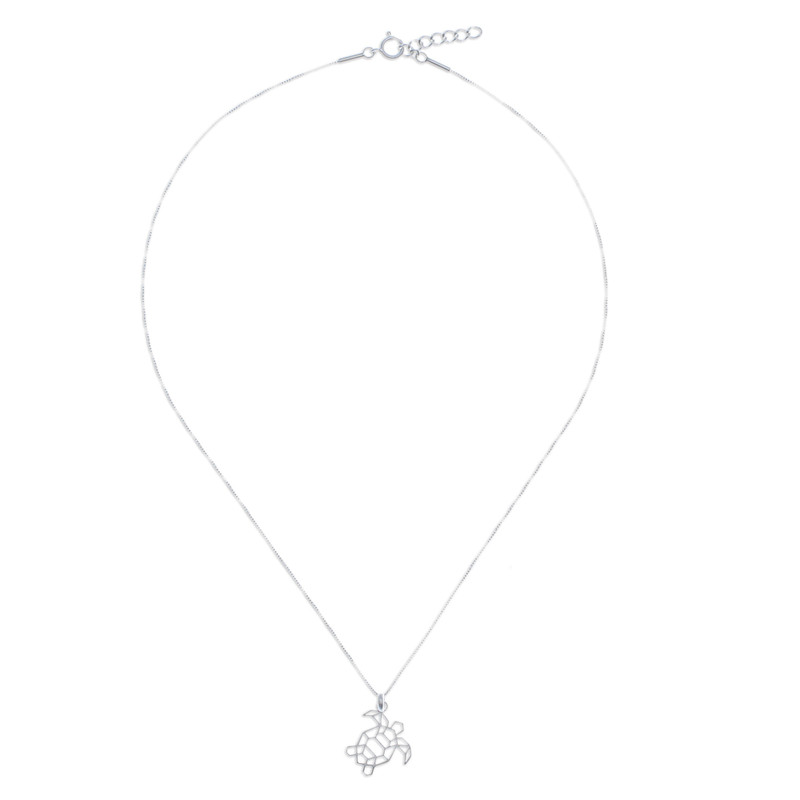 Geometric formations bring a little turtle to life, symbolizing longevity and wisdom. Following minimalist trends, Thai artisan Sarote Lochotinunt crafts this pendant necklace in a brushed-satin finish, creating a modern aura around the accessory that allows it to be the perfect complement to both formal and casual outfits.