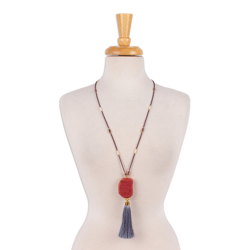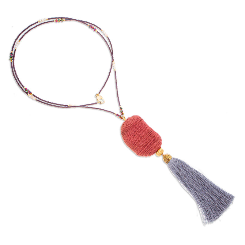 Mexican artisan Ali Guzman orchestrates a dazzling blend of chic elements in this alluring long Y necklace. The composition includes luminous cultured pearls, sophisticated 24k gold-plated brass accents, glistening crystal beads, dainty glass beads, a vibrant strawberry cotton pendant and a silk-blend smoke tassel that sways in rhythm with your every step, promising to transform your style effortlessly.