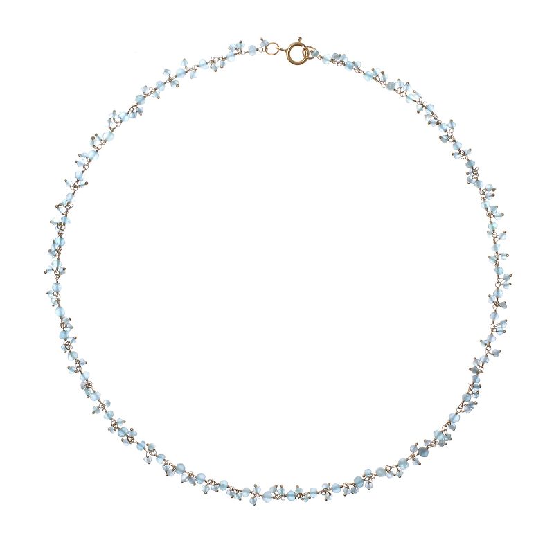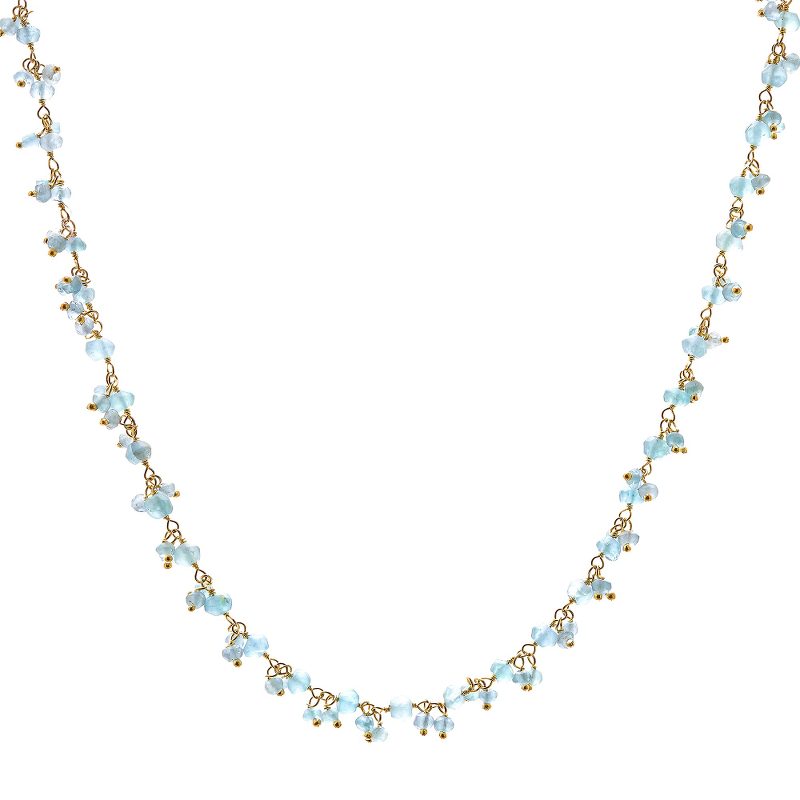 Dream of the Arctic with this necklace from Thailand. Designed by Matta, this accessory is crafted with 18k gold-plated sterling silver, beaded with dangling gemstone charms of natural apatite.