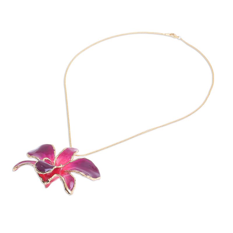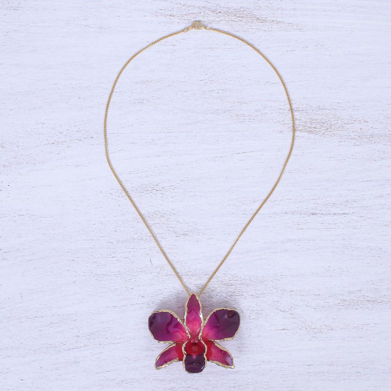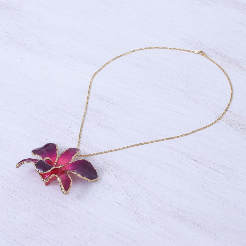 You can find our gold-accented orchid petal pendant necklace 'Orchid Magic in Red' by Danai in jewelry categories such as Floral Necklaces, No Stone Necklaces, Gold Necklaces, Gold Plated Necklaces and Natural Flower or Leaf Necklaces. Enjoy exploring these sections for other Novica treasures.