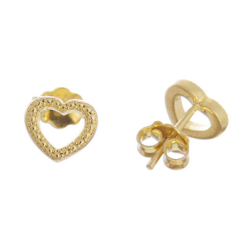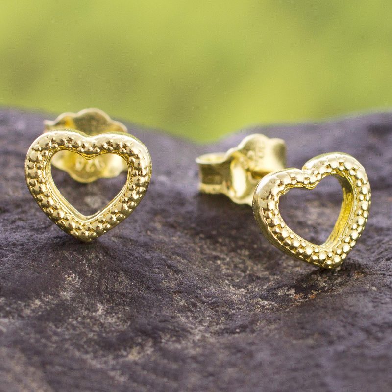 Crafted from sterling silver bathed in 18k gold, two lovely hearts form this pair of stud earrings from Peru. Two open hearts showcase cute dimples in a pair of stud earrings by Marianela Vargas.