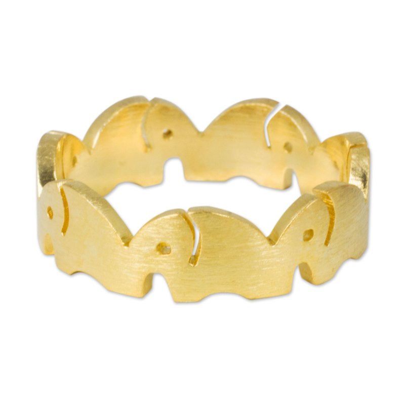 You can find our gold vermeil band ring 'Pachyderm Party' by Jantana in jewelry categories such as Animal Themed Rings, No Stone Rings, Silver Rings, Sterling Silver Rings and Gold Rings. Enjoy exploring these sections for other Novica treasures.