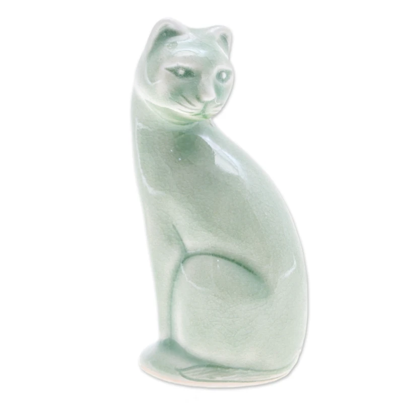 You can find our celadon ceramic figurine 'Beautiful Cat' by Kanda in categories such as Traditional Sculpture and Ceramic Sculpture. Enjoy exploring these sections for other Novica treasures.