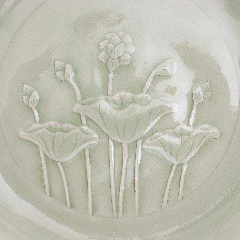 Backed by our 100% Happiness GuaranteeUncover the lovely lotus flower motif on your dinner plate as you eat your meal. Hand crafted from ceramic by Thai artisan Duangkamol, the celadon plate is glazed in green with a subtly crackled finish and features an elegant garden of blooming lotus flowers.