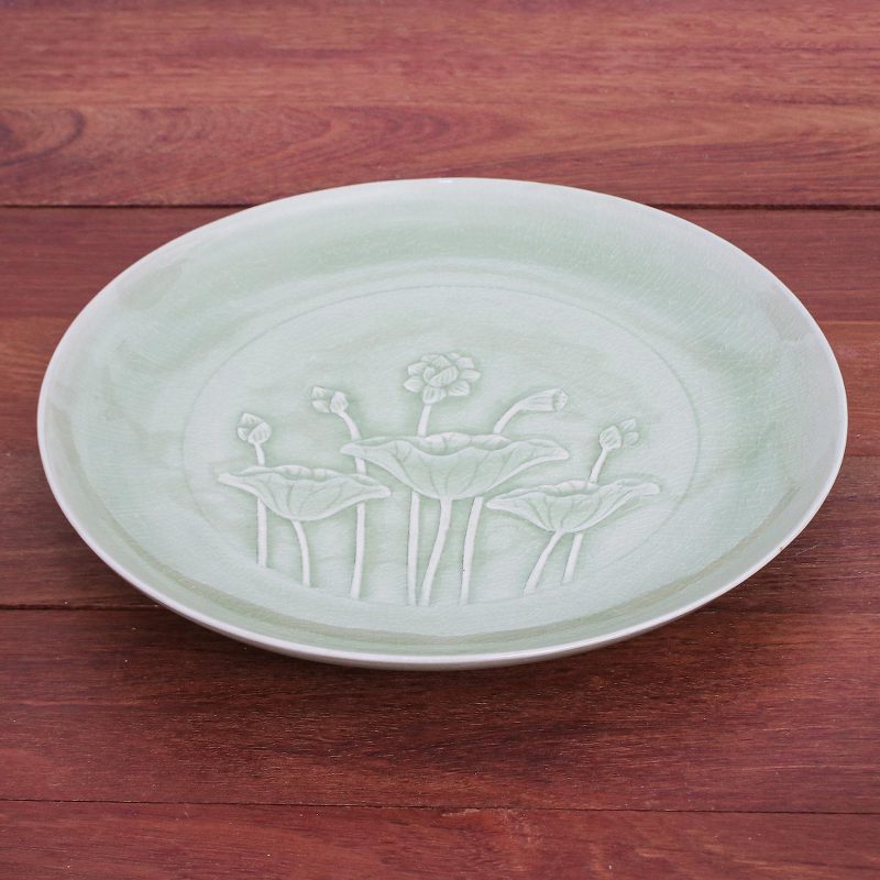 You can find our celadon ceramic dinner plate 'Flavorful' by Duangkamol in tableware categories such as Floral Dinnerware, Celadon Dinnerware, Ceramic Dinnerware and Dinner Plates Dinnerware. Enjoy exploring these sections for other Novica treasures.