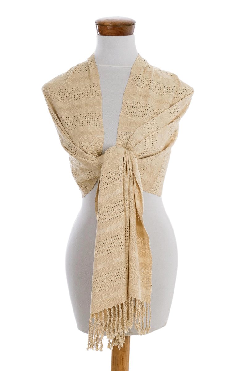You can find our rayon shawl 'Textured Vanilla Beige' by Elena Ixtamer in accessories categories such as Hand Woven Shawls and Rayon Shawls. Enjoy exploring these sections for other Novica treasures.