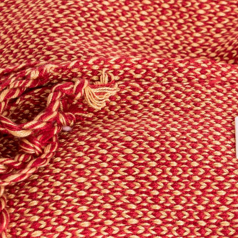 Woven on a traditional loom, this pretty scarf combines cotton yarns in paprika and straw yellow with a subtle geometric pattern. Elena Ixtamer in Guatemala designs the scarf, which features hand-braided fringe on both ends.