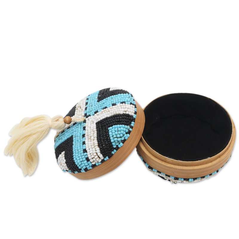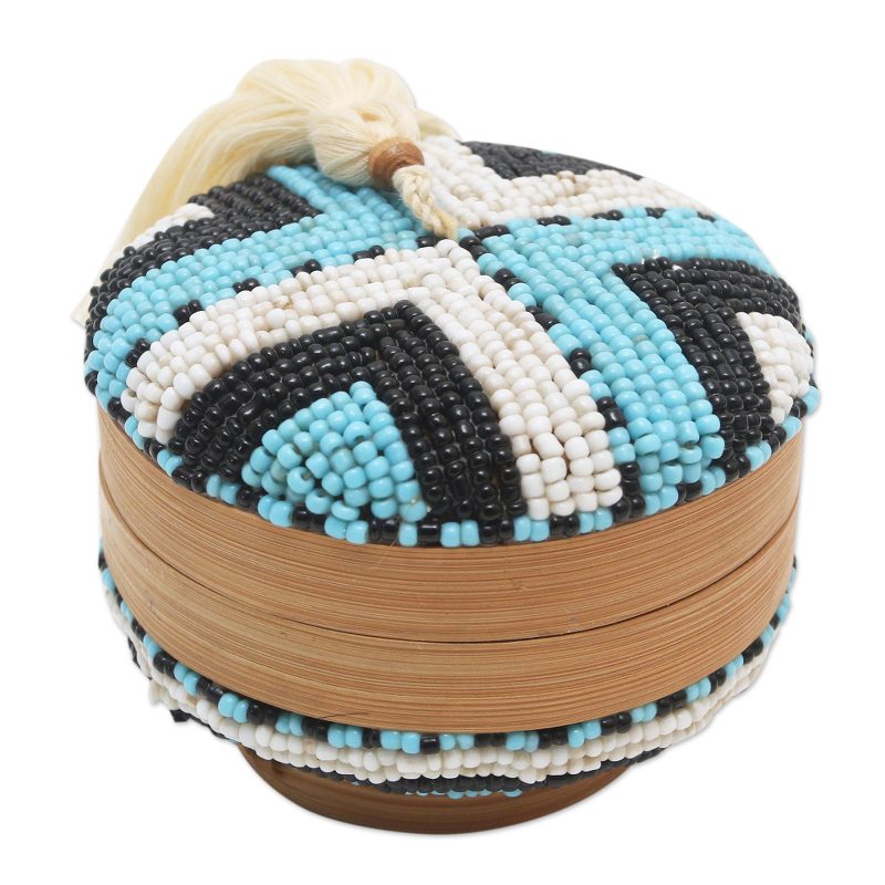 Backed by our 100% Happiness GuaranteeStore your delicate trinkets in Kadek Casa's decorative box, which is lined in plush faux-velvet. The Balinese artisan hand carves the petite box from natural bamboo, embellishing the lid with plastic beads in a striped pattern. A cotton tassel and wooden bead accents the top, while a black polyester lining cushions the inside.