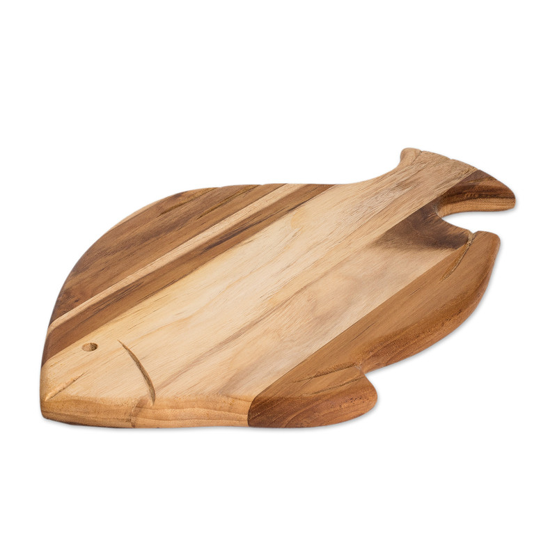 Backed by our 100% Happiness GuaranteeThe flavors and delights of the sea find a great complement in Teo Hernandez's newest creation. The Guatemalan artisan uses his exquisite talents to create this teak wood cheese board, whose fish shape allows the piece to exude a whimsical sensation ideal for a marine-themed party.