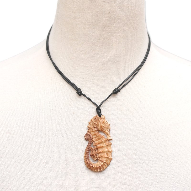 A marine life can be difficult, but a perseverant and noble creature makes its way in this world by using its resilient spirit. Balinese artisan Made Wardika honors the gentle seahorse with this hand-carved cow bone necklace, whose pendant portrays the species in all its splendor. The piece is also equipped with a cotton cord that can be adjusted to your liking.