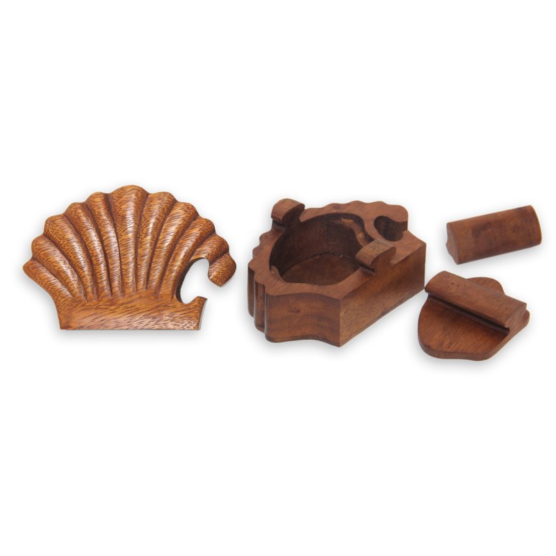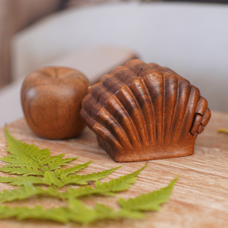 A clam shell leaves the Balinese sea to take shape in warm suar wood. By Eka, this decorative box holds a secret. Four pieces link together like a puzzle to hide personal treasures inside.