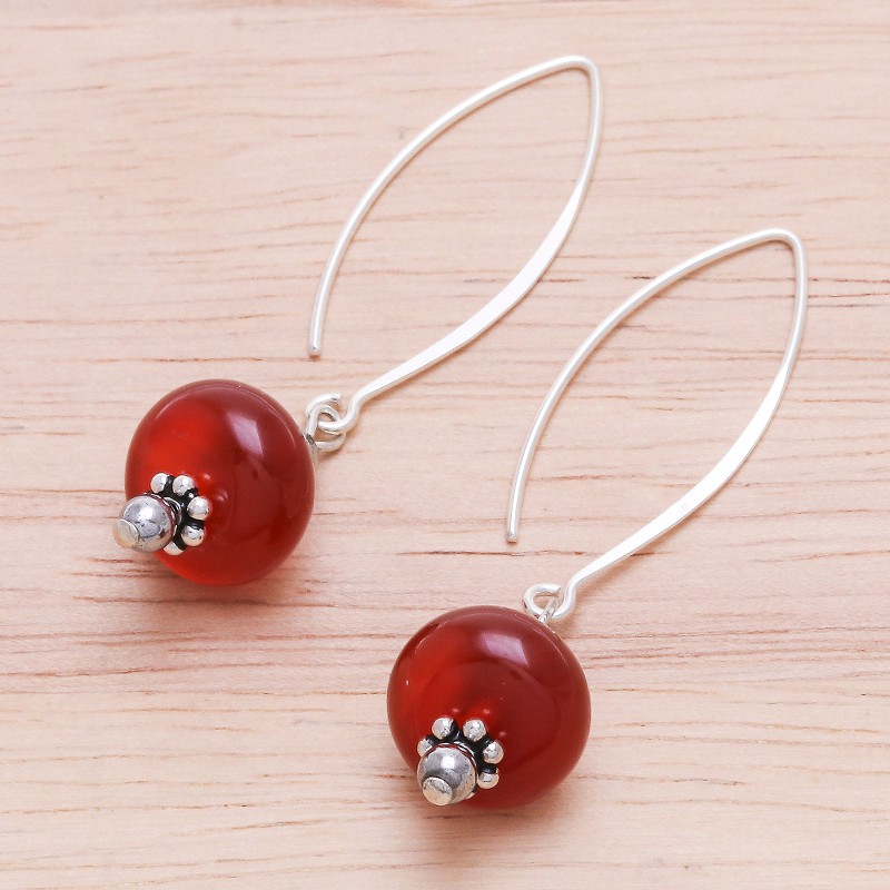 Get lost in a tangerine dream with these marvelous dangle earrings designed by Thailand's Tipa. The artisan surrounds rondelle carnelian beads with round hematite gemstones and sterling silver beads, then finishes the earrings with long, elegant sterling silver hooks.