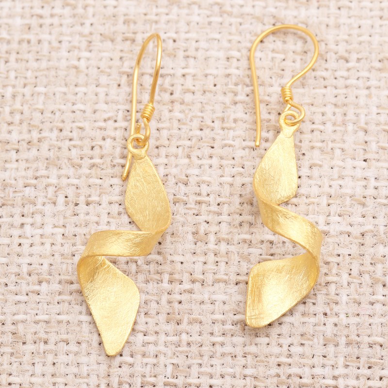 Backed by our 100% Happiness GuaranteeDesi Antari in Bali designs and crafts a pair of spirited earrings, perfect for a party. The artisan starts by hand crafting a loose coil of sterling silver, then plates the precious metal in 18k gold with a combination finish.